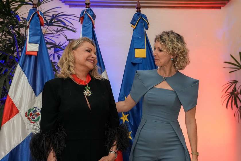 La embajadora Rosa Hernández de Grullón recibe la distinción de Comendador de la Orden Nacional de la Legión de Honor de Francia de manos de Sonia Barbry, embajadora de Francia en República Dominicana.