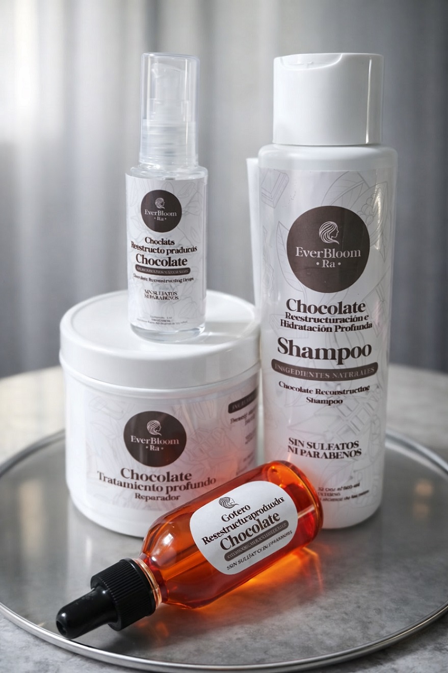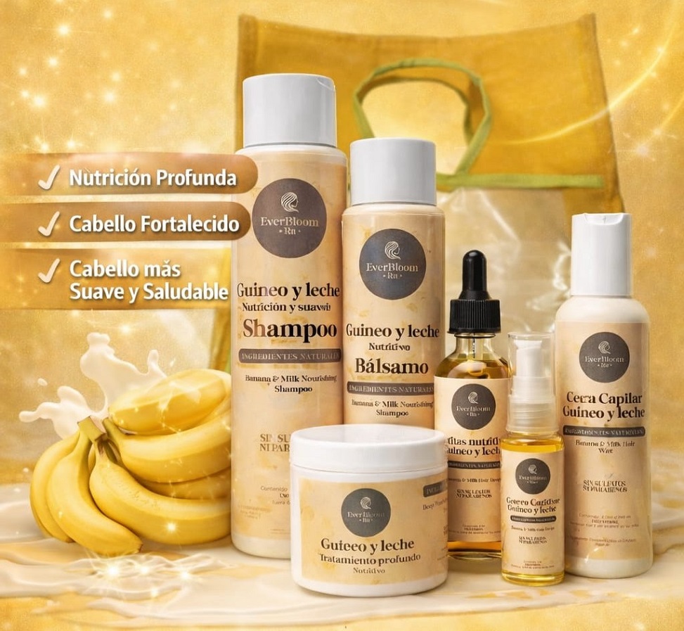 Su línea se distingue por integrar componentes conocidos por sus propiedades nutritivas y regenerativas. El guineo y la leche aportan densidad y fortaleza a la hebra capilar, contribuyendo a mejorar su elasticidad y resistencia frente al quiebre. A su vez, el chocolate actúa como un agente de hidratación intensiva, favoreciendo la suavidad, el brillo y la recuperación de cabellos resecos o maltratados.